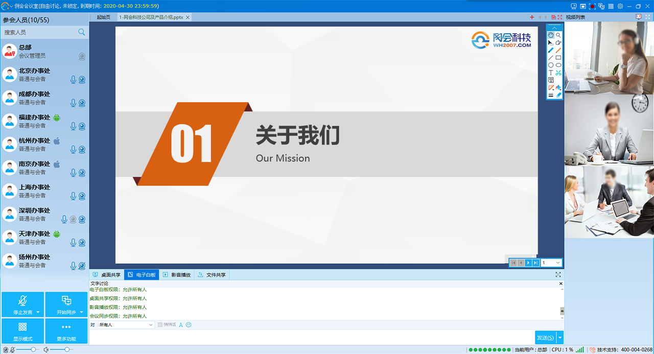 網(wǎng)會科技(wh2007)為您供應網(wǎng)絡視頻會議系統(tǒng) ,局域網(wǎng)視頻會議解決方案,遠程培訓系統(tǒng),遠程教育軟件,歡迎集成商,開發(fā)商,渠道商,企業(yè),學校,政府,培訓機構購買網(wǎng)頁視頻會議設備。詳情詢:400-004-0268。